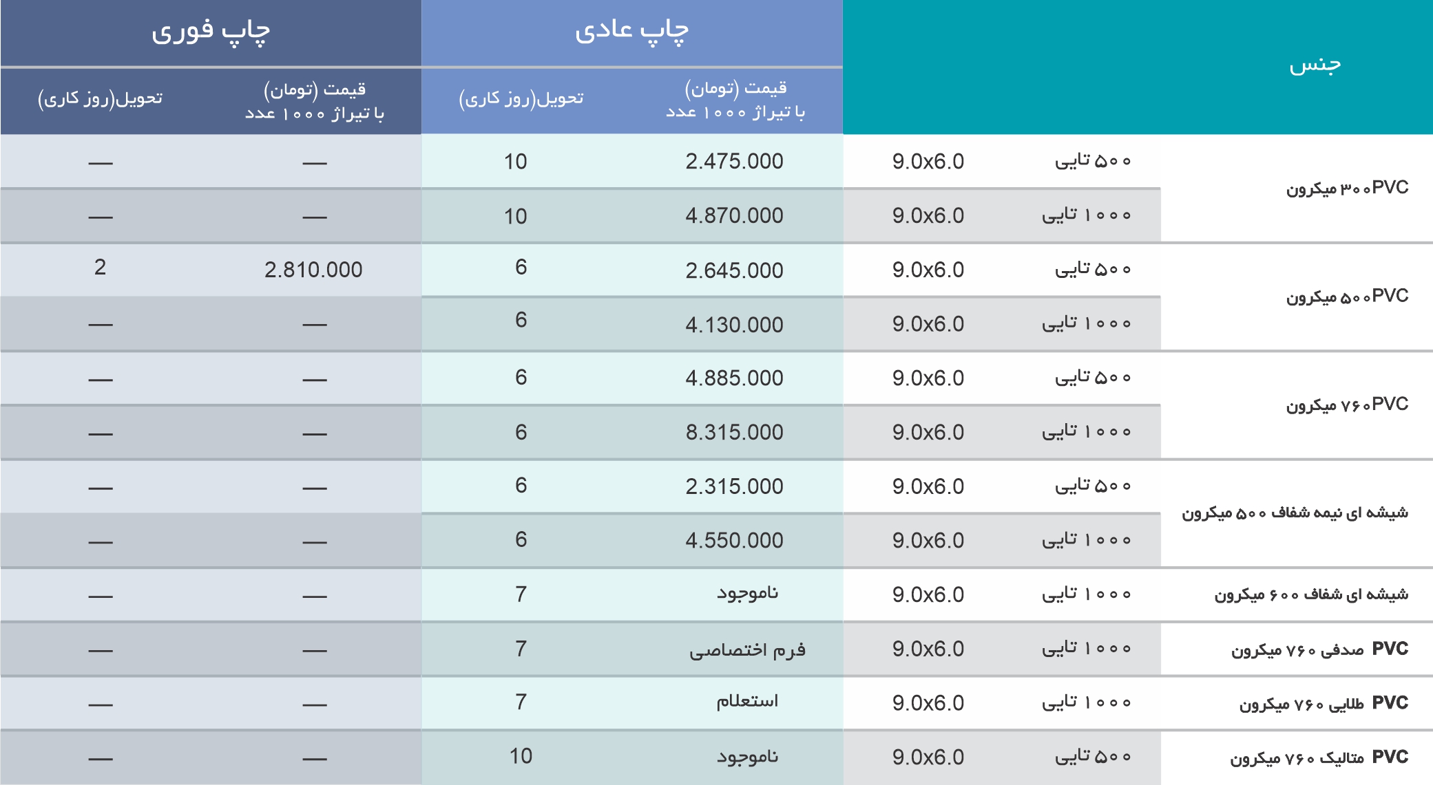کارت ویزیت لمینت